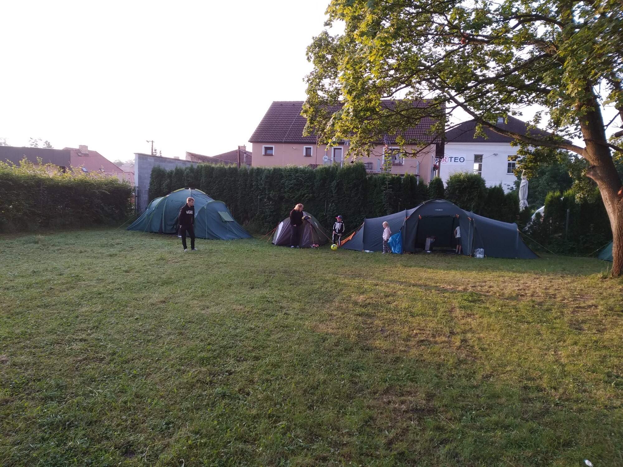 Další den ráno byla pro děti připravena snídaně a program v podobě možnosti jízdy na elektrokoloběžkách, malování na obličej a vystoupení sokolníka, poté se děti sbalily a čekaly na odvoz. Ještě dopoledne navozila část vedoucích a členové sboru další věci na koupaliště jako potraviny na vaření, hry, vodu atd. Po obědě byly děti převezeny zpět do Střížovic, kde již probíhal program dle vedoucích z našeho sboru. Děti si postavily stany a začala ta správná zábava. Pro děti byly připraveny hry, ale i děti se uměly zabavit dle svého, karty a míče to je ta správná věc a nesměla chybět koupačka. Na večeři bylo připraveno grilování, o které se postarali ostřílení šéfové grilu, maso všem dětem velice chutnalo. Během večeře dorazila polní kuchyně SDH Horní Bříza, která nám měla další dva dny vyvařovat. Po večeři si děti zahrály ještě nějaké hry a posléze byla ohlášena večerka a děti ulehly do stanů.