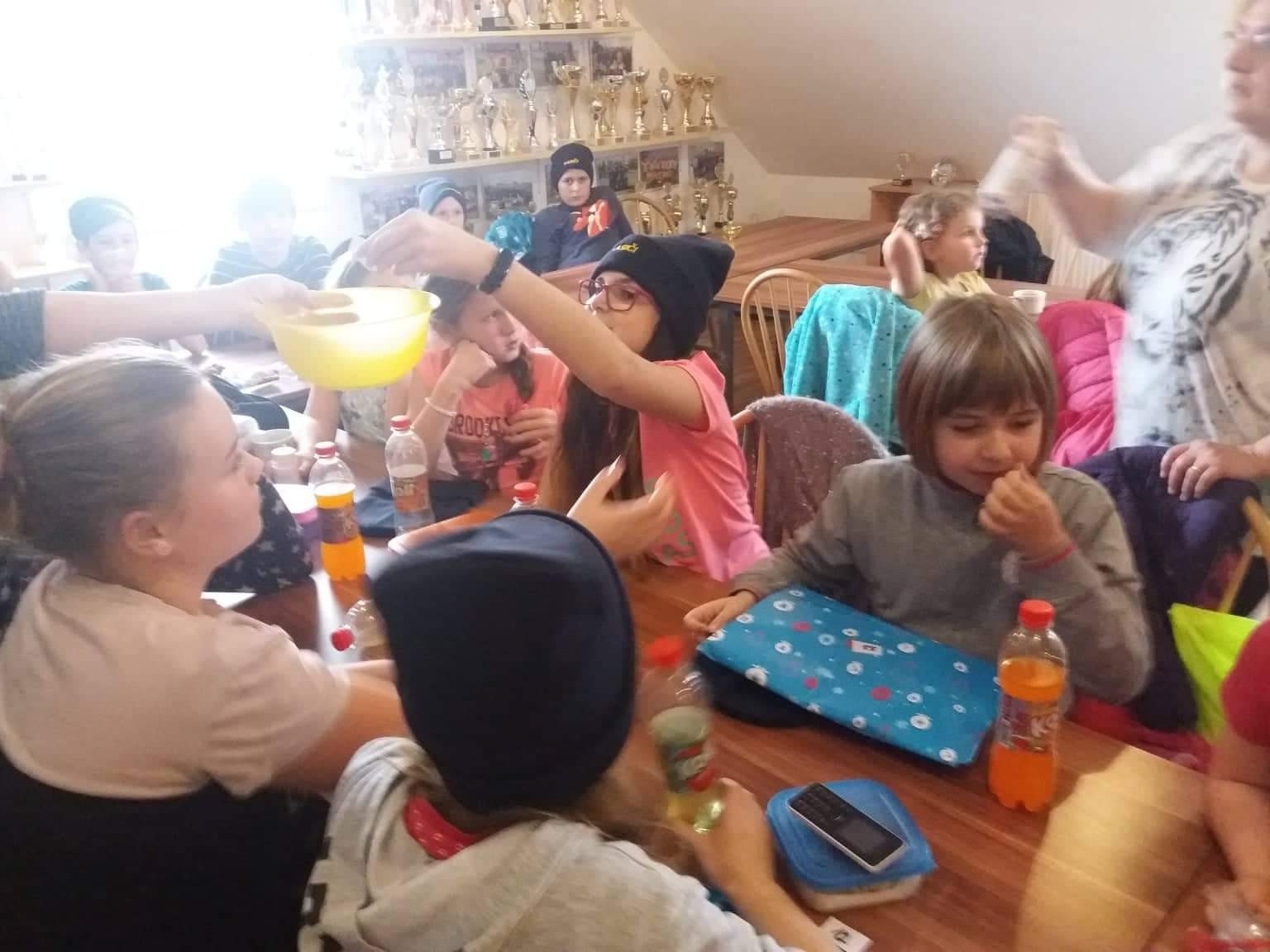 Každé dítko přineslo jeden dárek do tomboly, ty byly očíslovány a děti si následně tahaly lístečky s číslem dárku. Po čas celé schůzky pojídali děti přinesené cukroví, popíjeli čaj a nakonec si dopřály i dětské šampaňské.