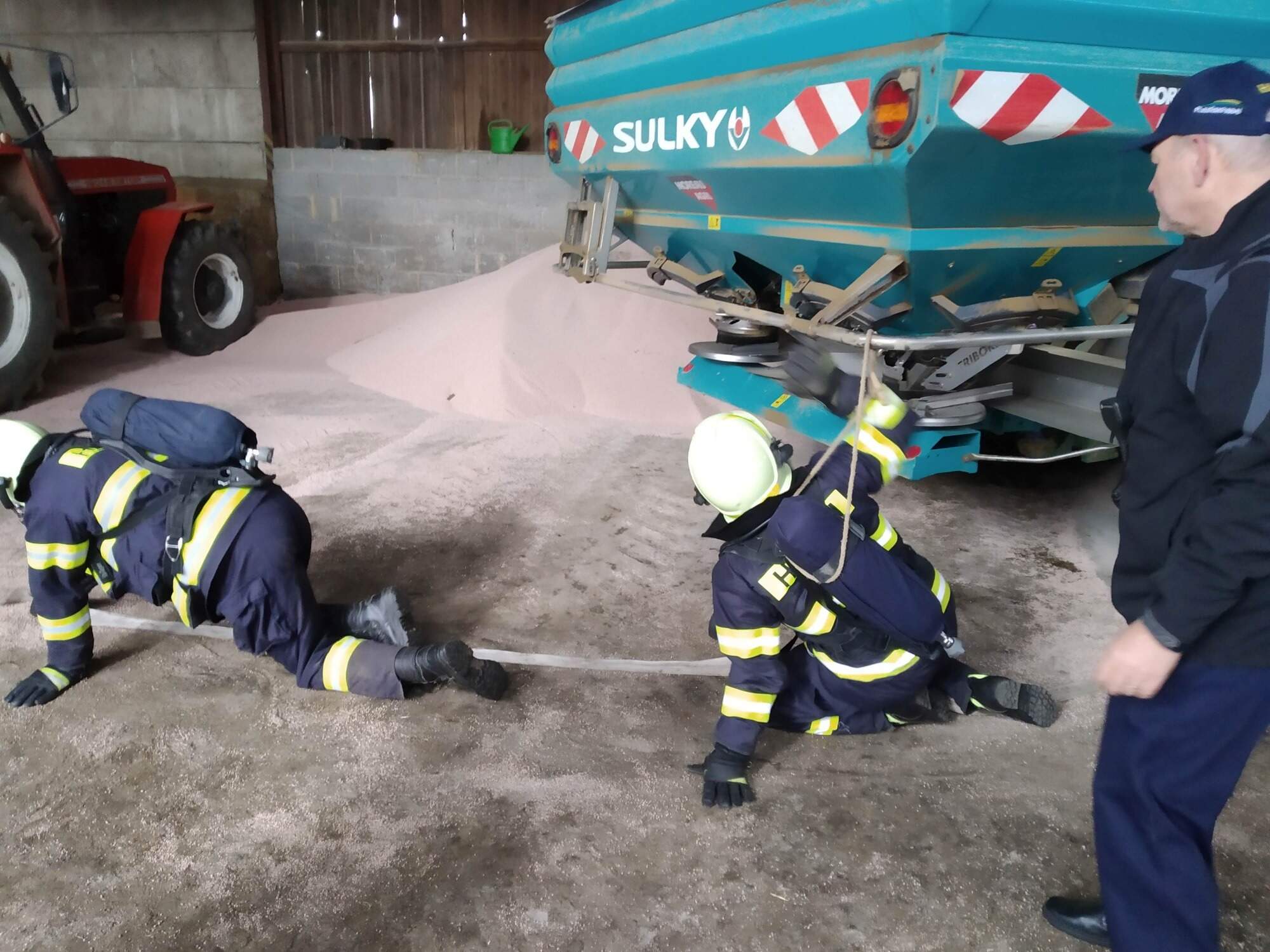 Sobotní odpoledne 23. dubna si pro naši výjezdovou jednotku připravil její velitel Luboš Hajšman, ve spolupráci s naším členem a velitelem HZS stanice Nepomuk Zbyškem Zuberem, praktický výcvik v místním středisku zemědělské společnosti Komorno a.s. Členové jednotky se sešli na 8 hodinu ranní v hasičské zbrojnici, převlékli se do zásahových kompletů, vyzbrojili se radiostanicemi a vyrazili k blízké hale střediska zemědělské společnosti. Zde si řídící výcviku připravili orientaci v neznámém prostoru s dýchací technikou za snížené viditelnosti.